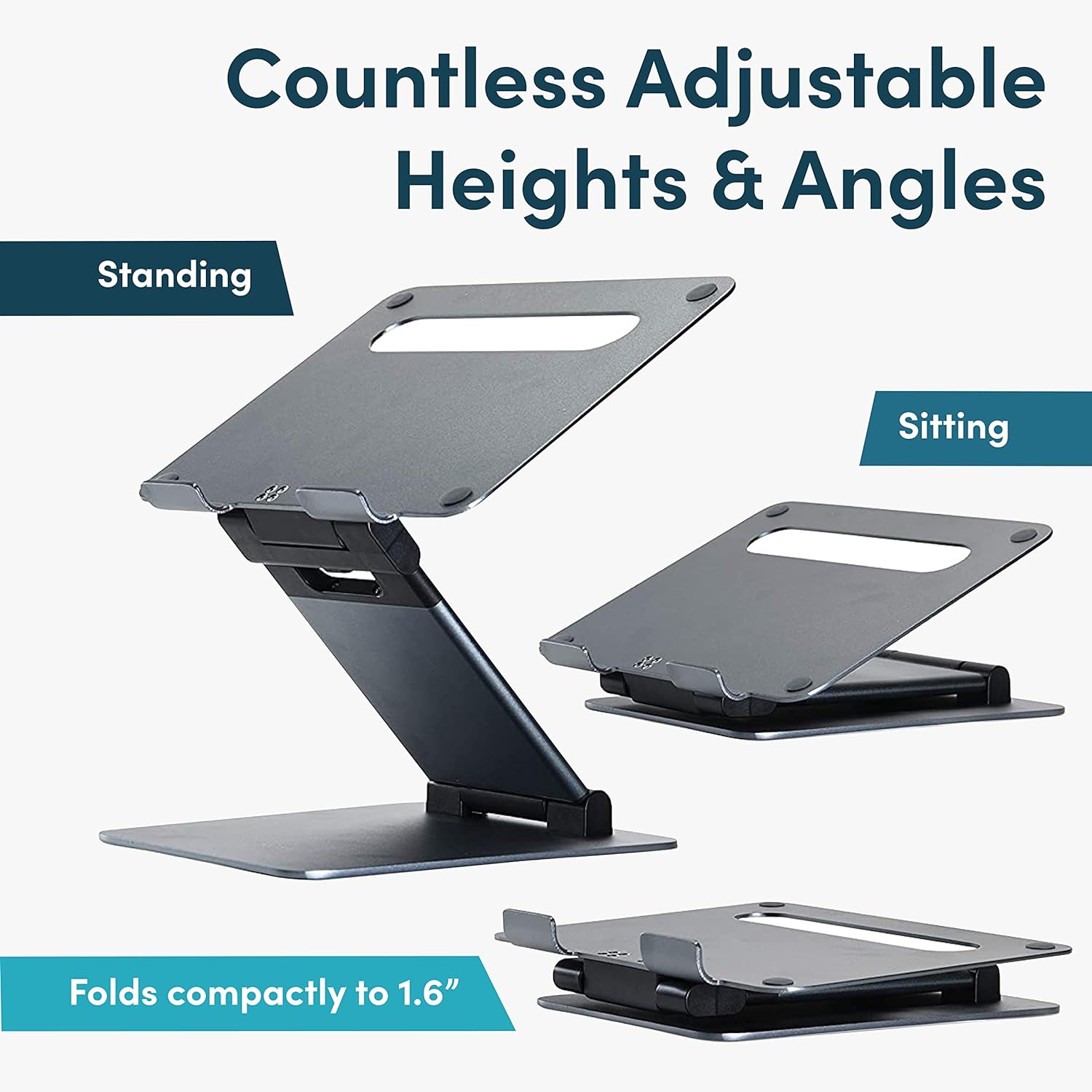 - UPRYZE ERGONOMIC STAND! If You are having issues with your back then you are at the right place, Our ERGONOMIC LAPTOP STAND is compatible and will work perfectly for ALL MACBOOK AND LAPTOPS of all sizes from 10 inch tablets to 17 inch laptops including MacBook Air, Pro, 10, 13, 15, 15.6 and 17 inch laptops. You can USE IT WHILE SITTING OR STANDING. With it's cool design, it even keeps your laptop cool so that it DOESN'T OVERHEAT.